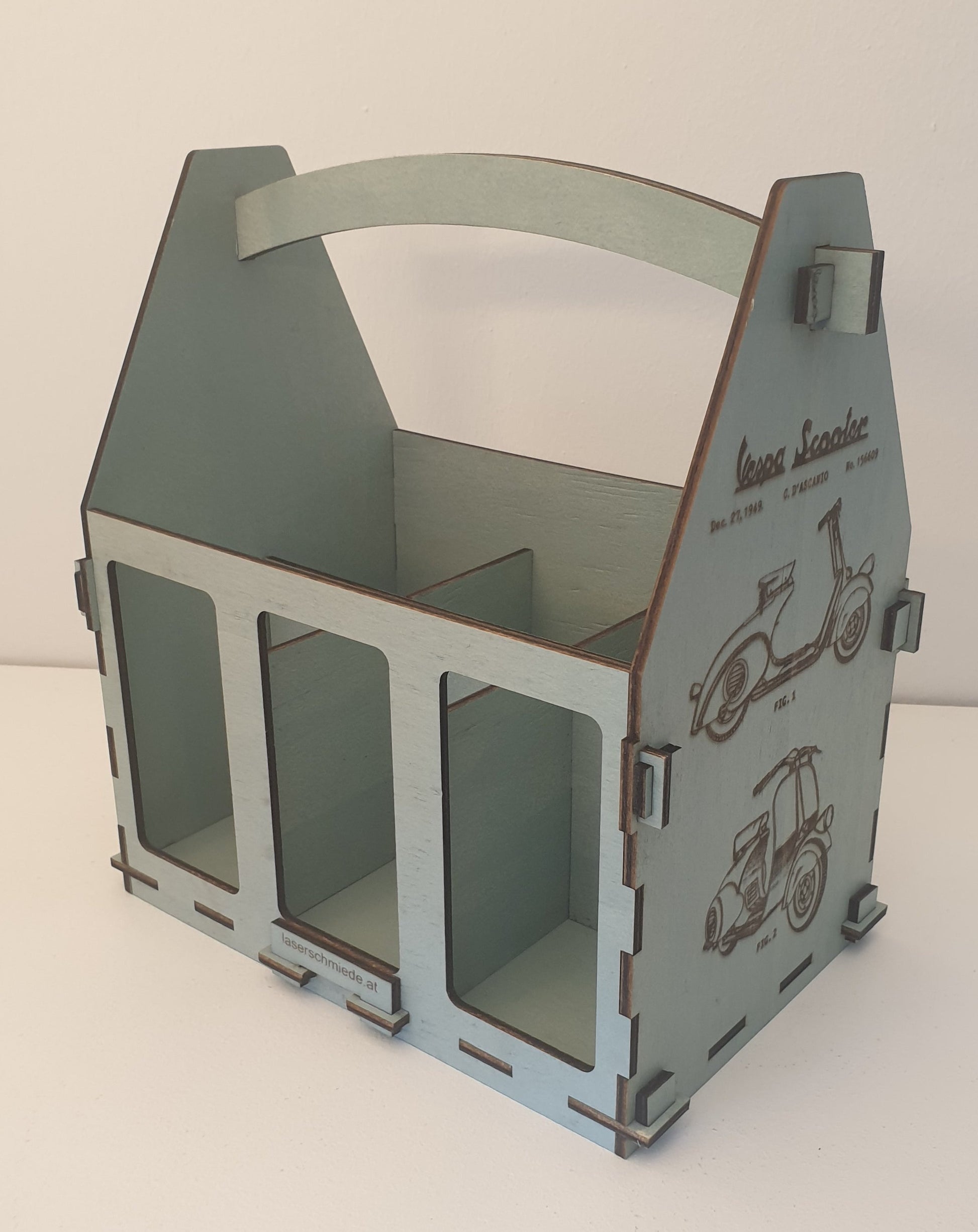 Ein ganz besonderes 22-teiliges Biertragerl mit tiefgreifenden Details! Dieses Unikat wurde als Dankeschön für einen Vespa Guru gefertigt.